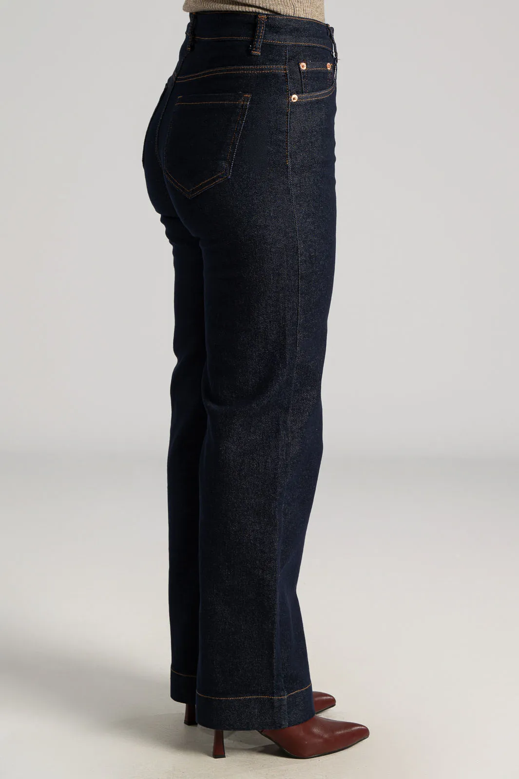 Τζιν σε straight line ύφος. Είναι ψηλόμεσο. Έχει εξωτερικές ραφές. Είναι 5τσεπο. Αναδεικνύει υπέροχα τις καμπύλες του σώματος. Οι μετρήσεις του πίνακα είναι αντιπροσωπευτικές για κάθε κωδικό. 70% cotton, 28% polyester, 2% elastan.