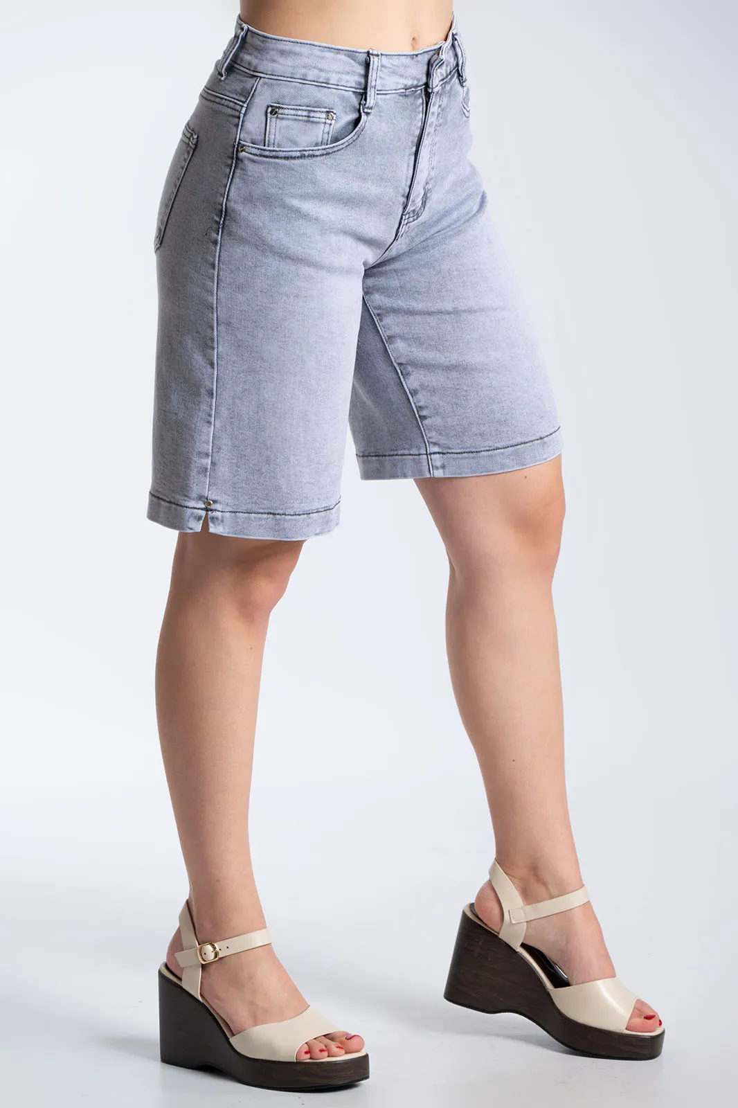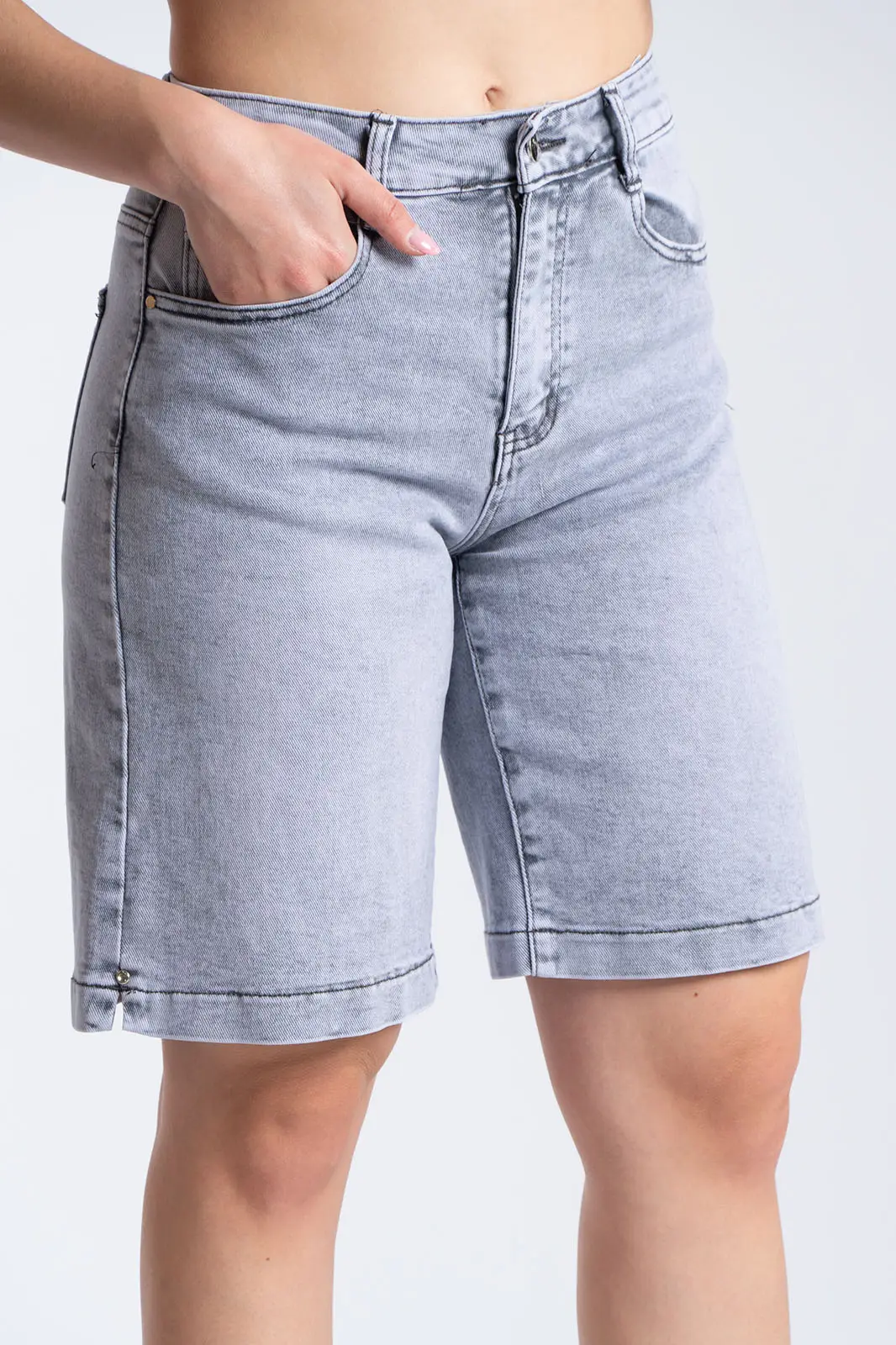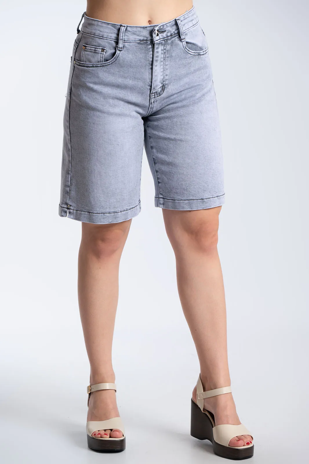 Μοντέρνα τζιν βερμούδα με κλασικό 5τσέπο σχεδιασμό και εφέ ξεβαμμένου, ιδανική για καθημερινά casual looks. Διαθέτει ψηλόμεση εφαρμογή και σταθερή γραμμή που αγκαλιάζει το σώμα, ενώ το washed εφέ της δίνει έναν διαχρονικό χαρακτήρα. Κλείνει με φερμουάρ και κουμπί και αποτελεί εύκολη επιλογή για άνετες και στιλάτες εμφανίσεις όλη τη μέρα.