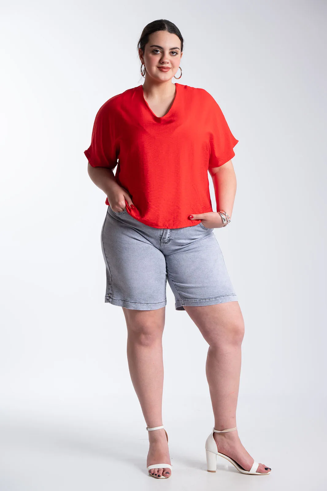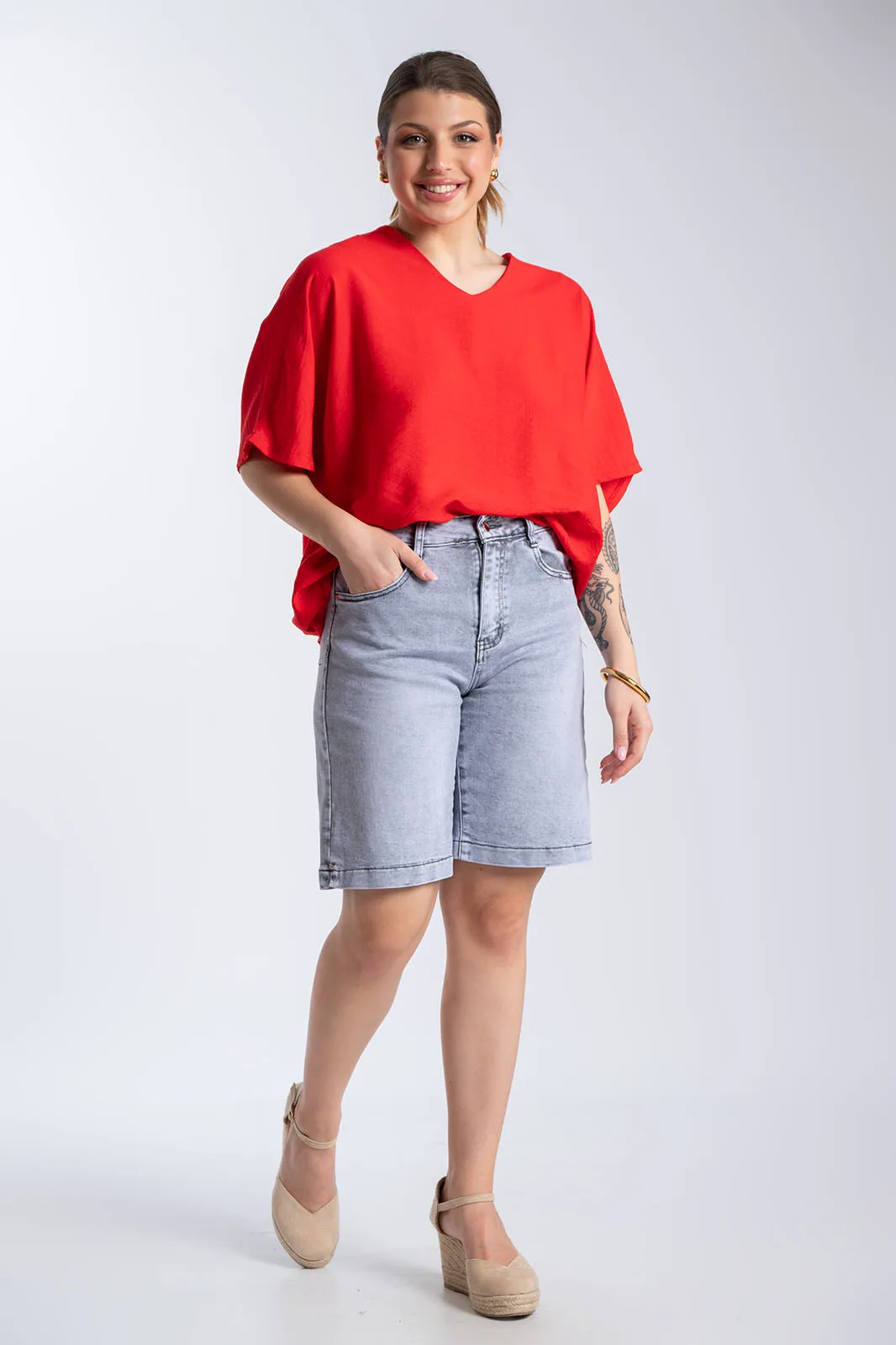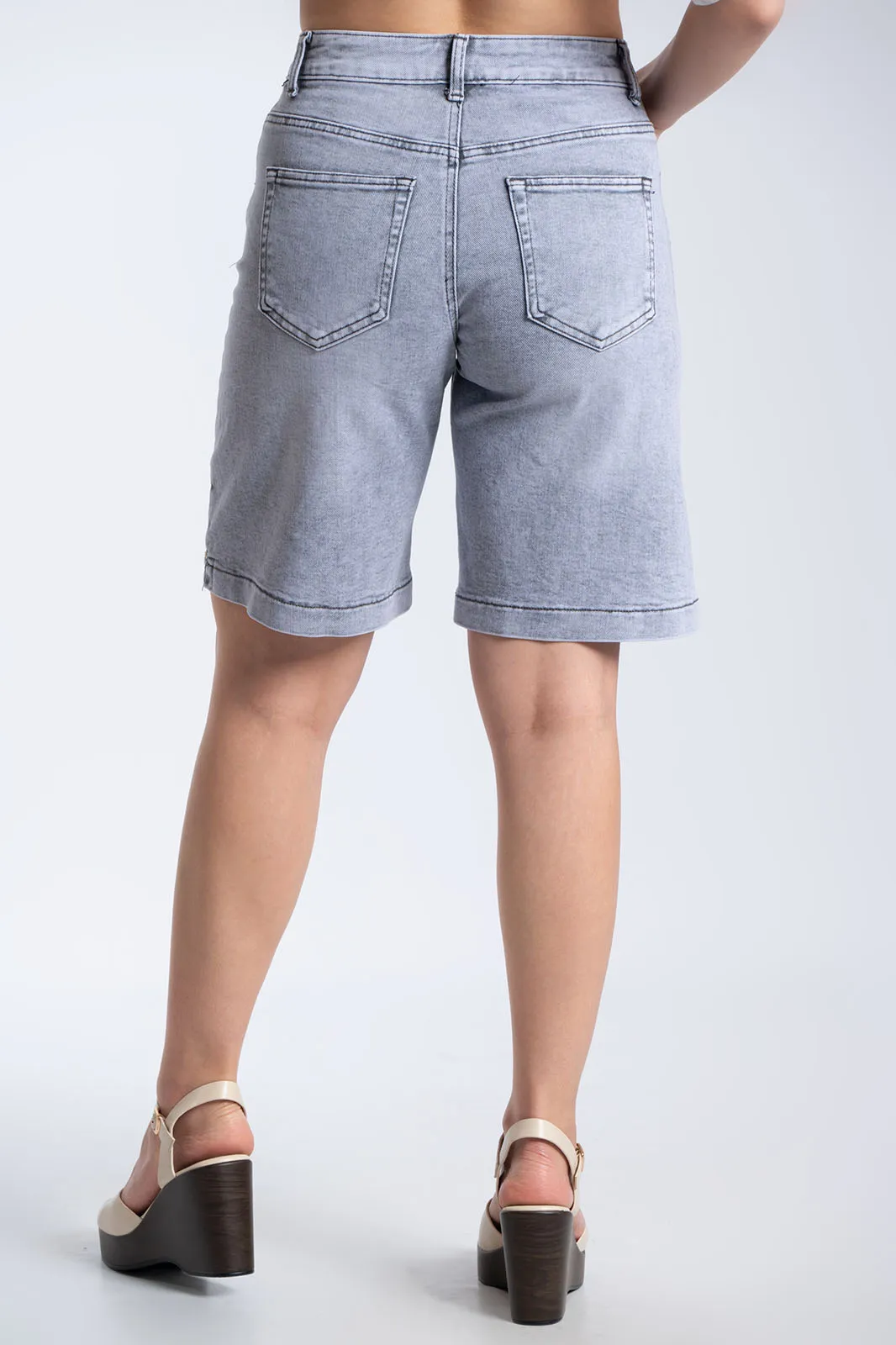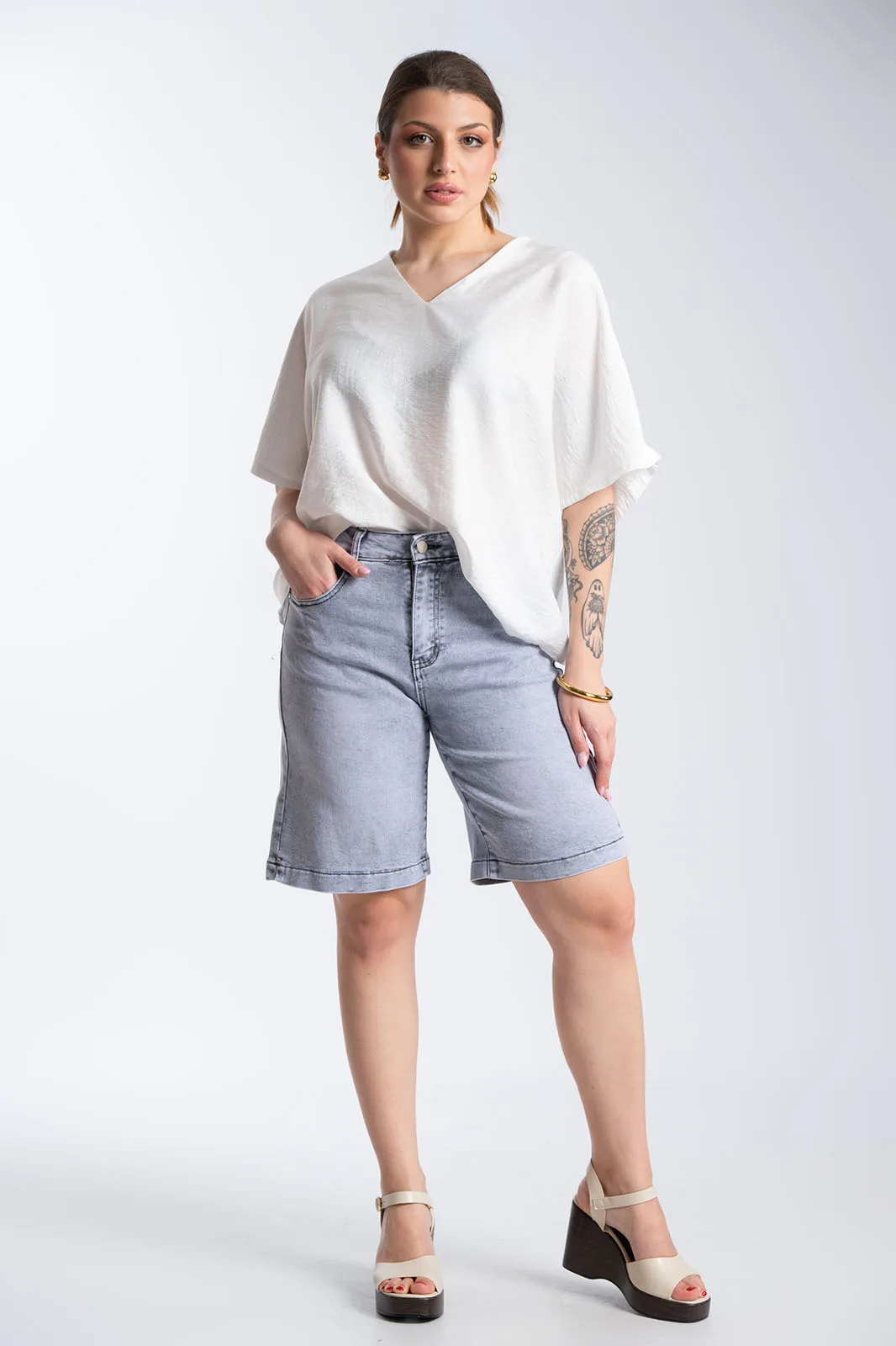 Μοντέρνα τζιν βερμούδα με κλασικό 5τσέπο σχεδιασμό και εφέ ξεβαμμένου, ιδανική για καθημερινά casual looks. Διαθέτει ψηλόμεση εφαρμογή και σταθερή γραμμή που αγκαλιάζει το σώμα, ενώ το washed εφέ της δίνει έναν διαχρονικό χαρακτήρα. Κλείνει με φερμουάρ και κουμπί και αποτελεί εύκολη επιλογή για άνετες και στιλάτες εμφανίσεις όλη τη μέρα.
