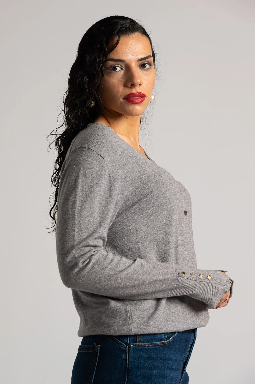 CARDIGAN THREAD BUTTONS GRAY