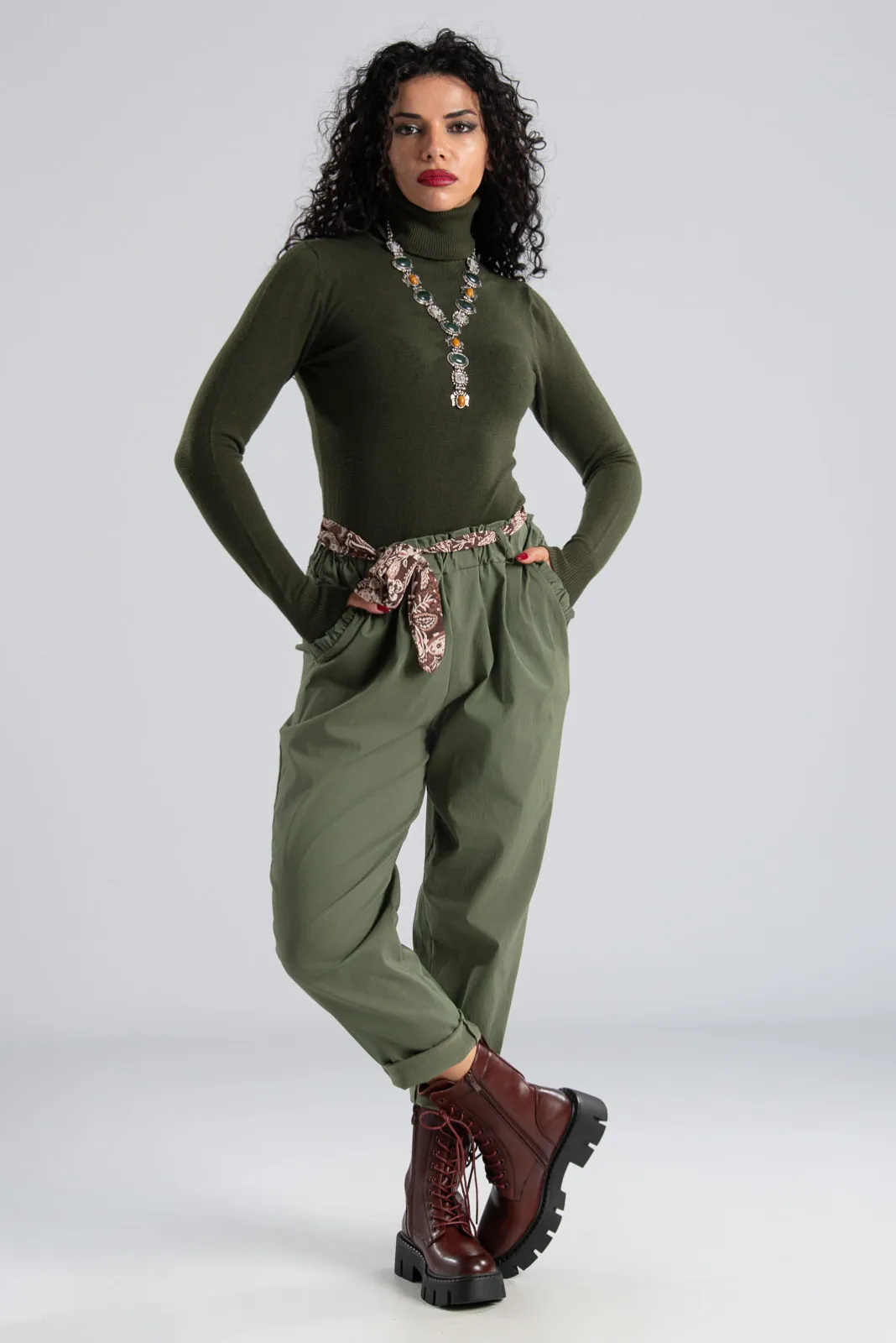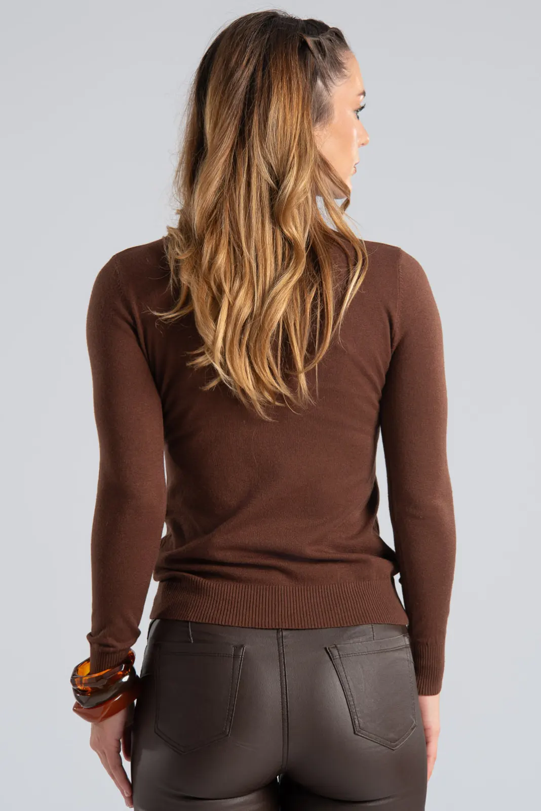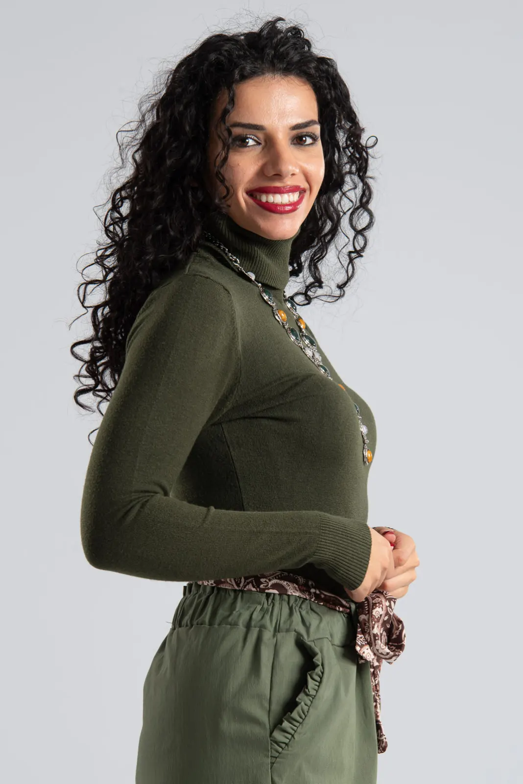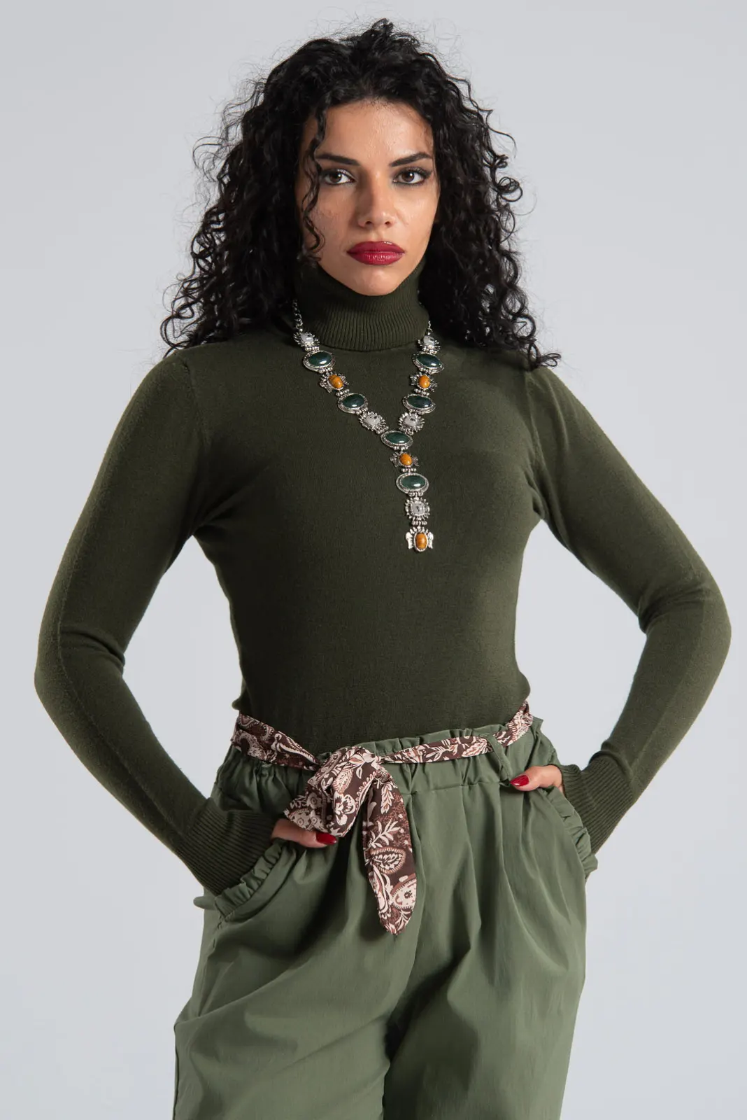 Μπλούζα νημάτινη με ζιβάγκο λαιμόκοψη. Είναι σε ίσια γραμμή και έχει μακριά μανίκια. Το τελείωμα της, το ζιβάγκο και το τελείωμα των μανικιών έχει rib ύφανση. Το ύφασμα της είναι πολύ μαλακό. Οι μετρήσεις του πίνακα είναι αντιπροσωπευτικές για κάθε προϊόν. 88% viscose, 12% nylon.