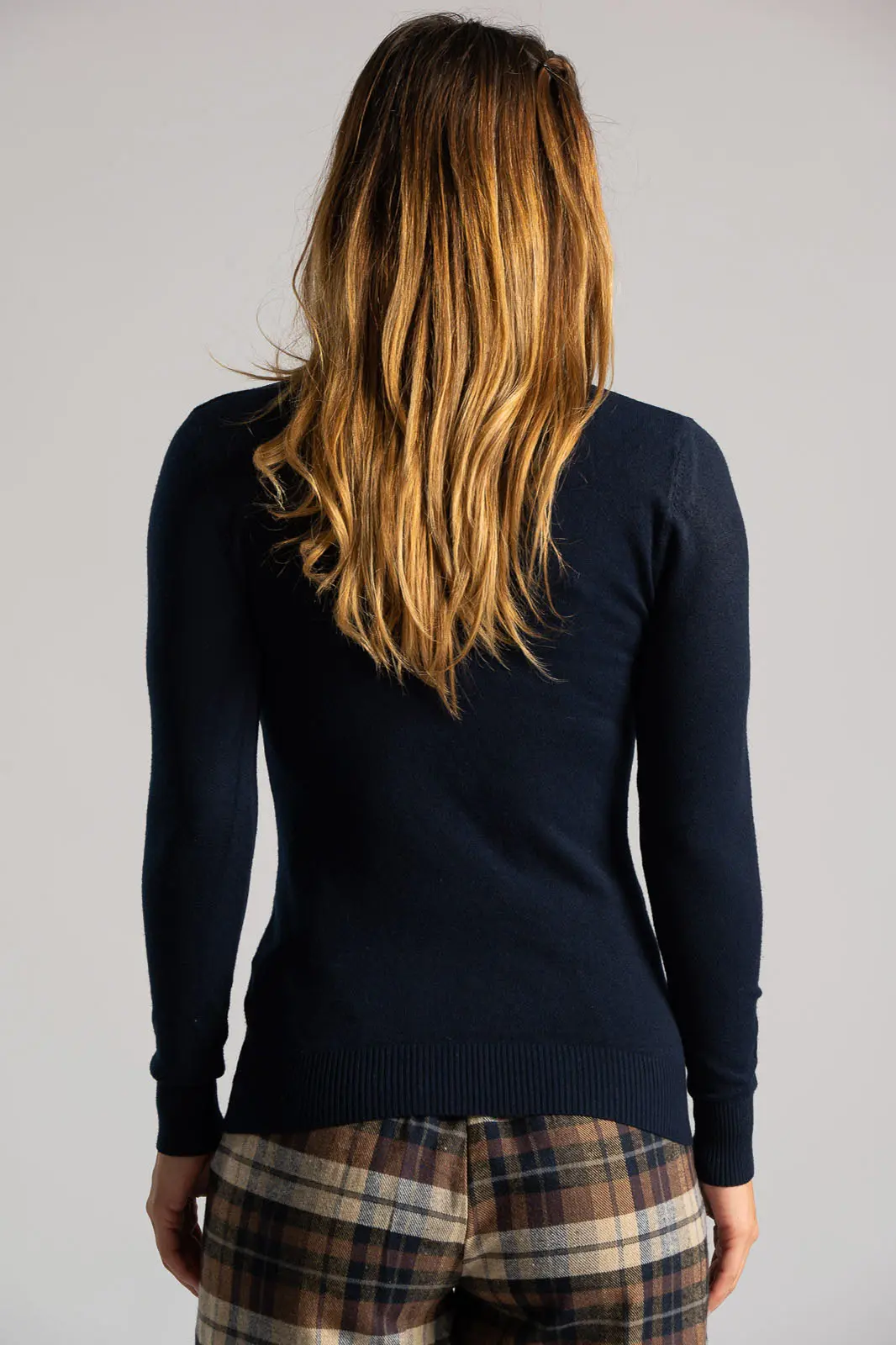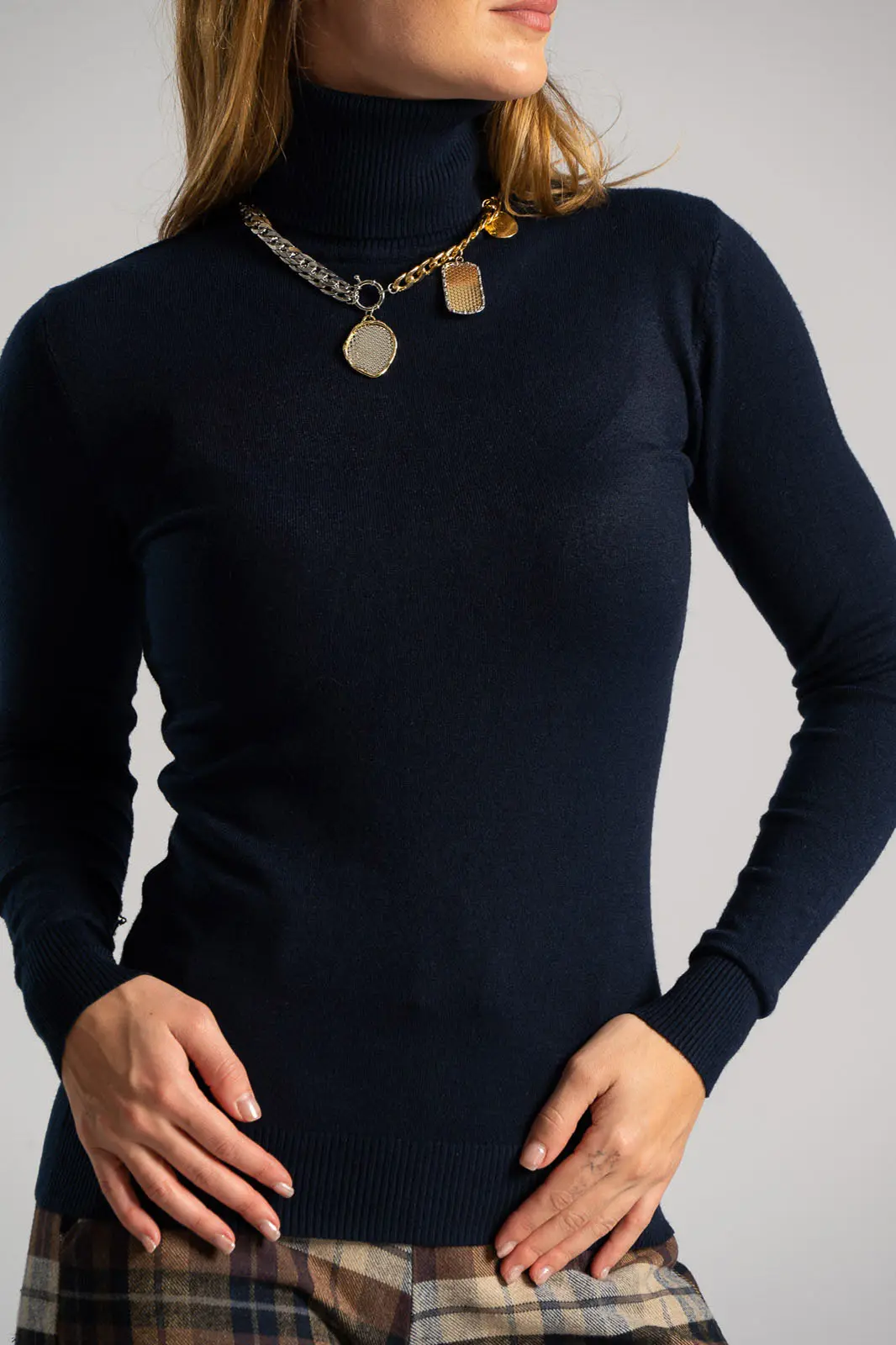 Blouse with a turtleneck collar. It has a straight cut and long sleeves. The hem, turtleneck, and cuffs have a ribbed knit. The fabric is very soft. The measurements in the table are representative of each product. 88% viscose, 12% nylon.