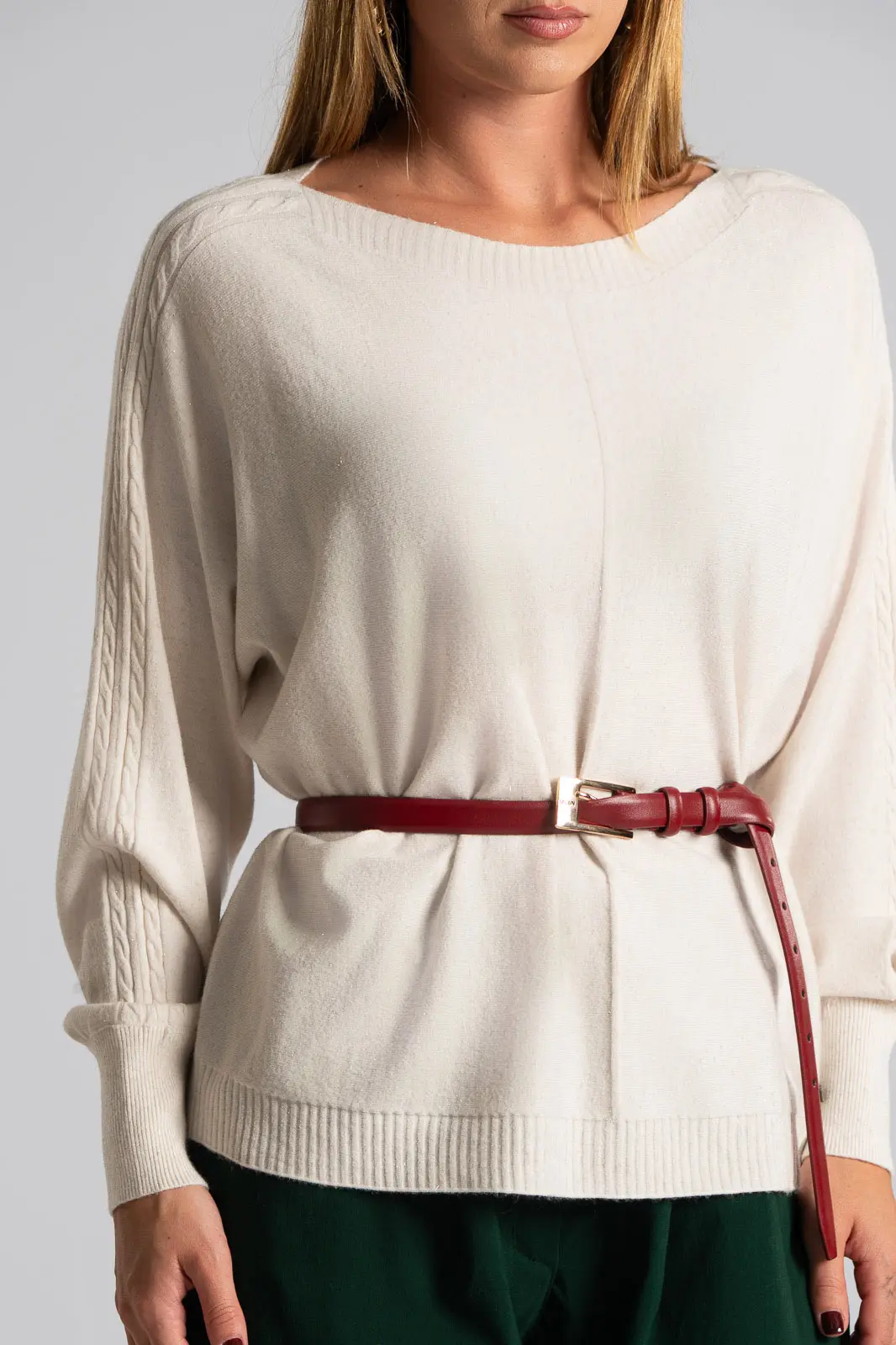 Belt made of high-quality leatherette. It has a rectangular buckle and is 2 cm wide.